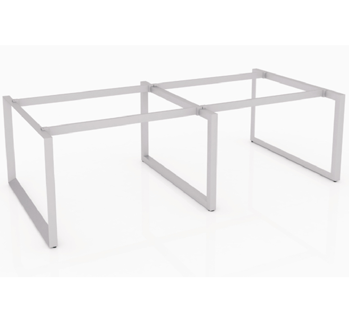 Mặt bàn chữ nhật nối liền xuống dưới là thanh xương sắt nâng đỡ mặt bàn được bắt với chân sắt dạng tam giác quỳ.