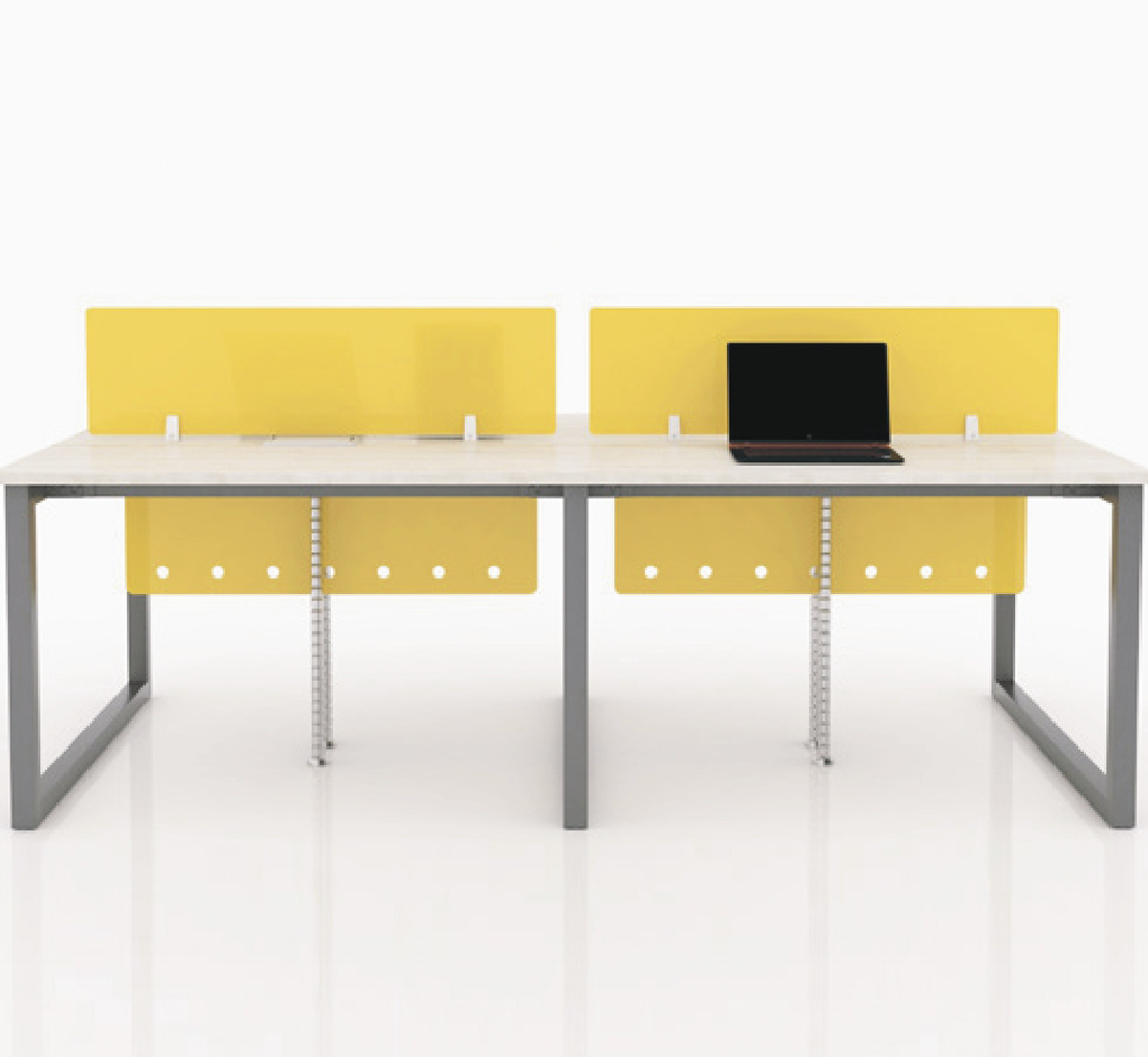 Mặt bàn chữ nhật nối liền xuống dưới là thanh xương sắt nâng đỡ mặt bàn được bắt với chân sắt chữ nhật.
