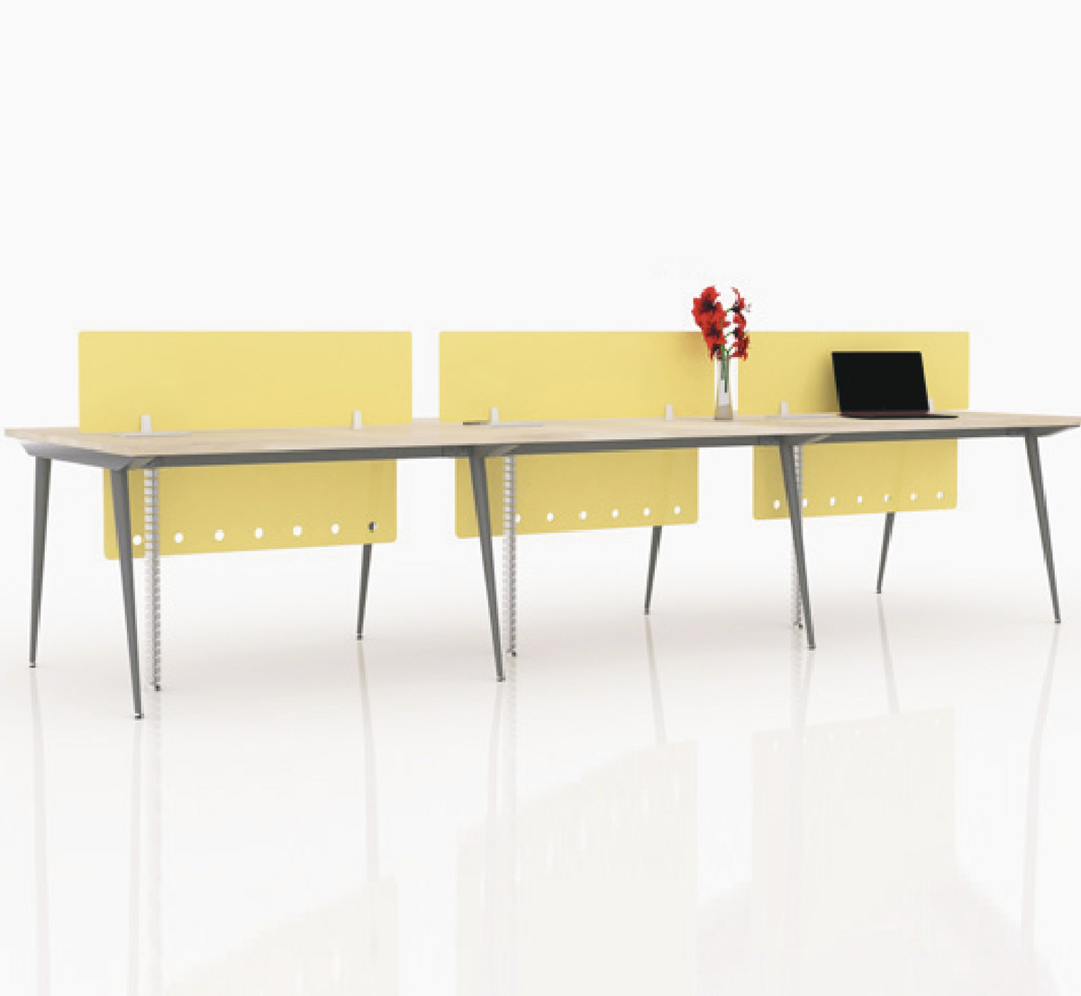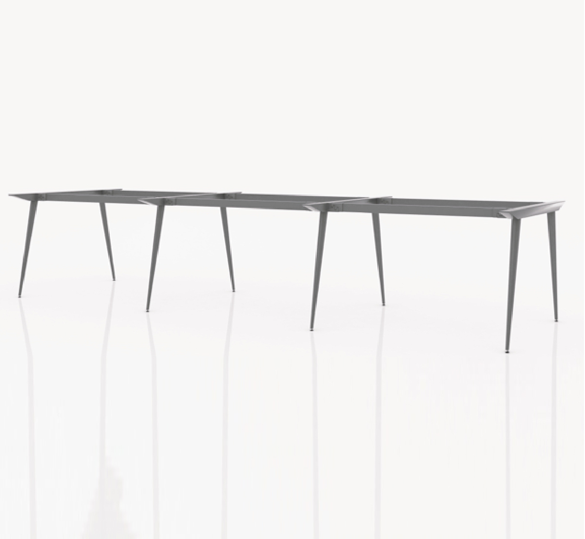 Mặt bàn chữ nhật nối liền xuống dưới là thanh xương sắt nâng đỡ mặt bàn được bắt với chân sắt chữ nhật.