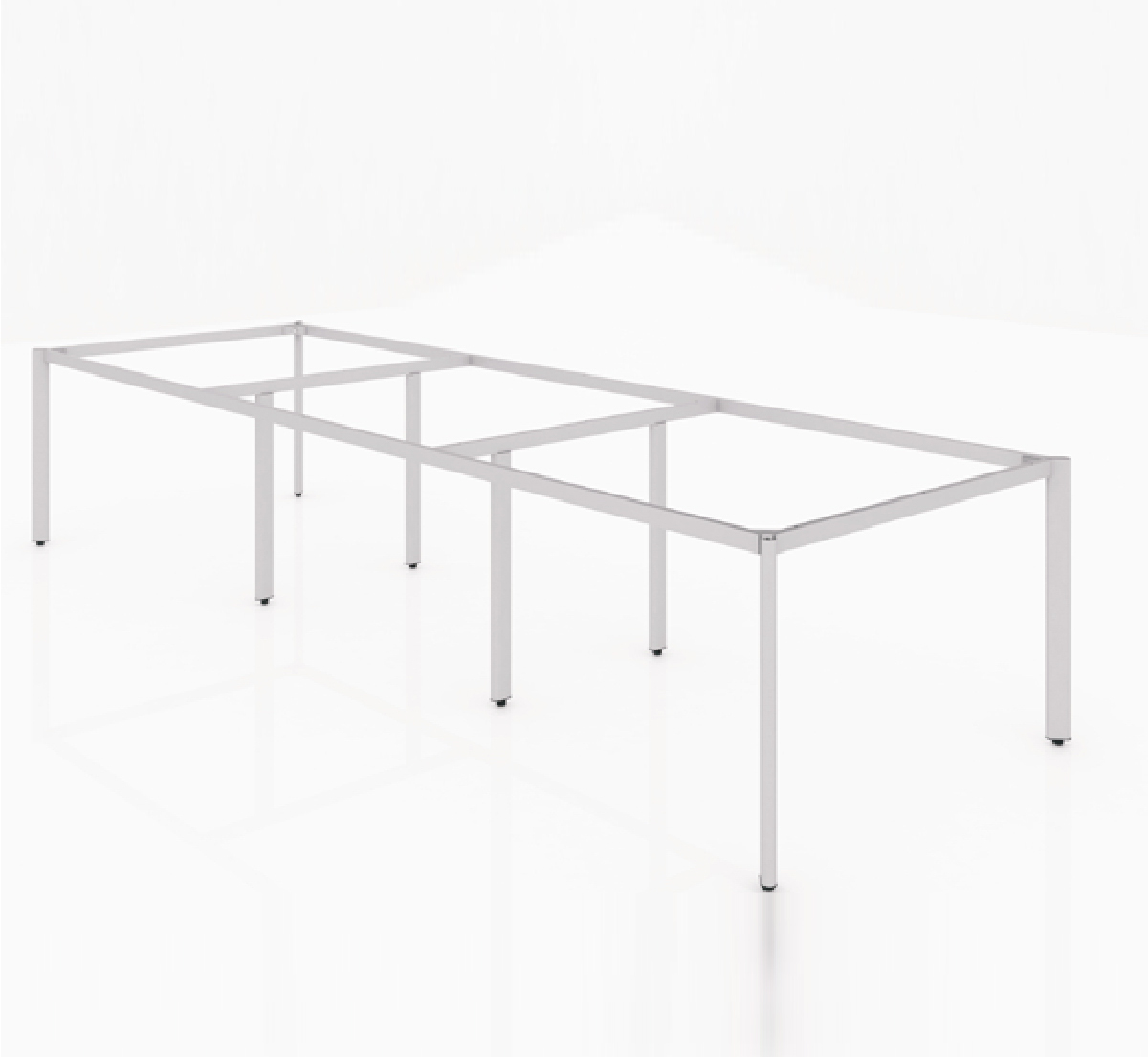Mặt bàn chữ nhật nối liền xuống dưới là thanh xương sắt nâng đỡ mặt bàn được bắt với chân sắt dạng Oval.