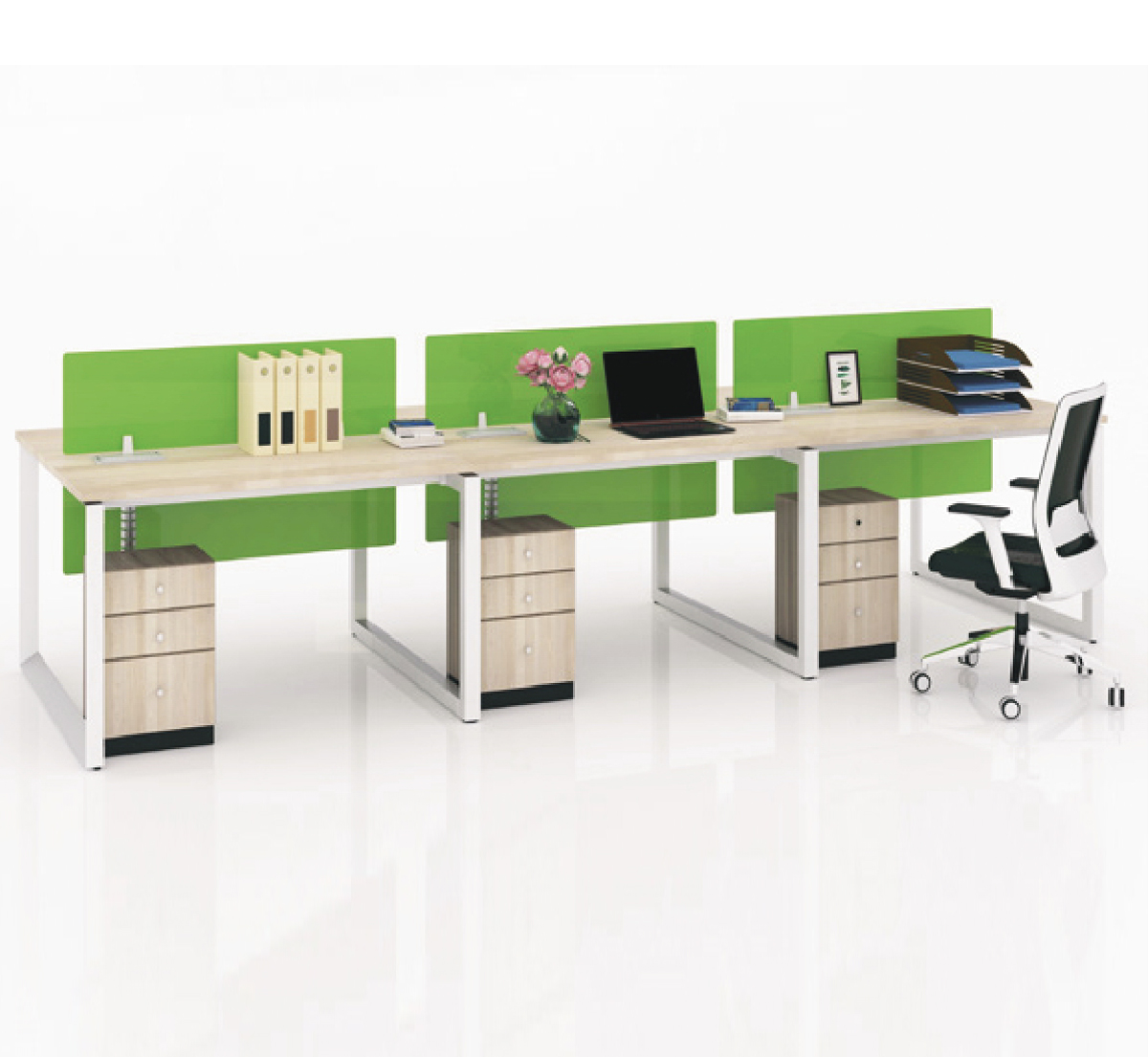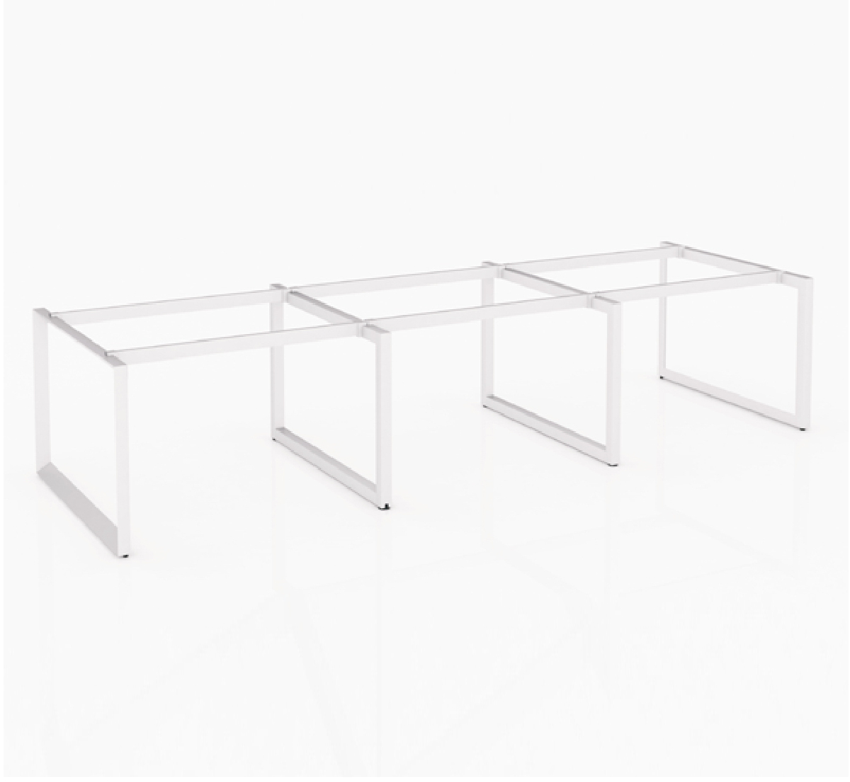 Mặt bàn chữ nhật nối liền xuống dưới là thanh xương sắt nâng đỡ mặt bàn được bắt với chân sắt dạng tam giác quỳ.