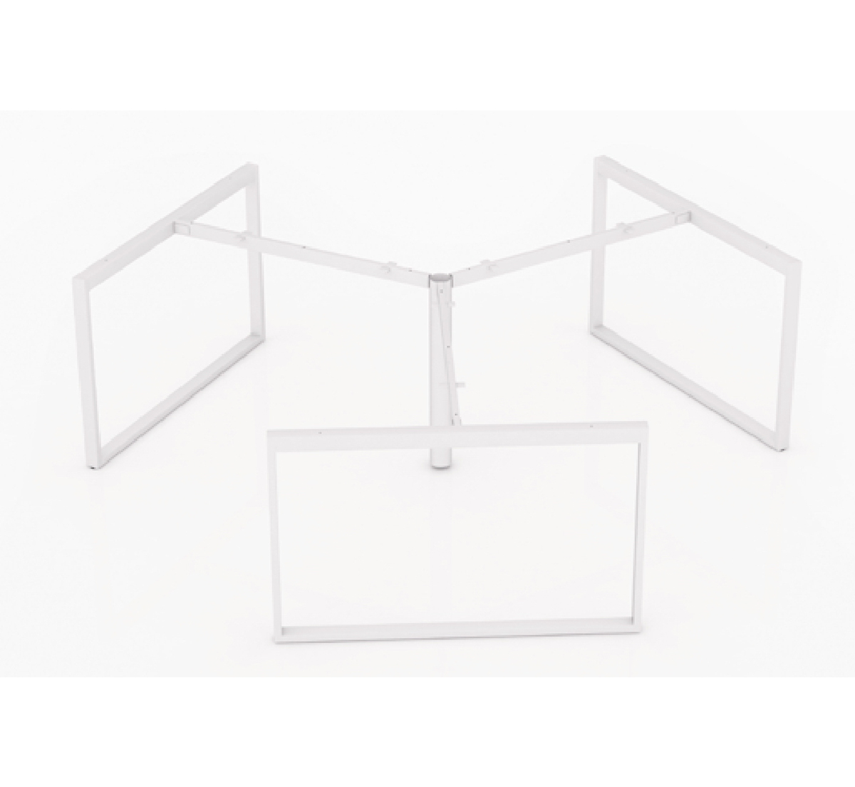 Mặt bàn chữ nhật nối liền xuống dưới là thanh xương sắt nâng đỡ mặt bàn được bắt với chân sắt chữ nhật.