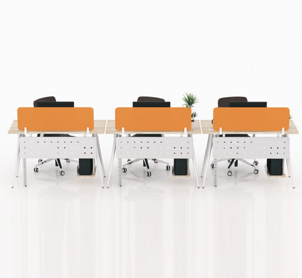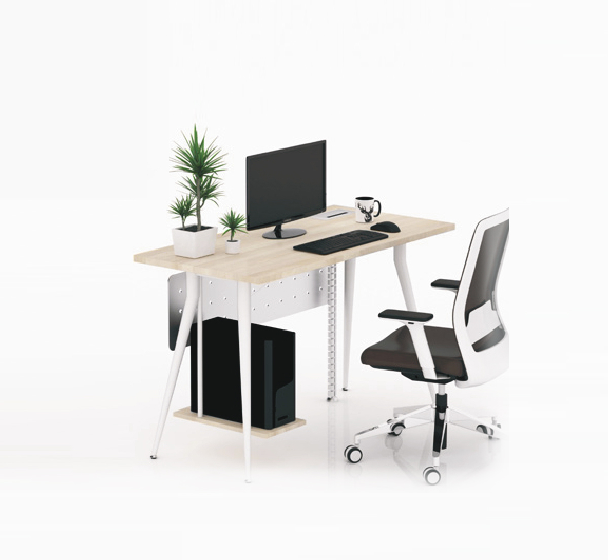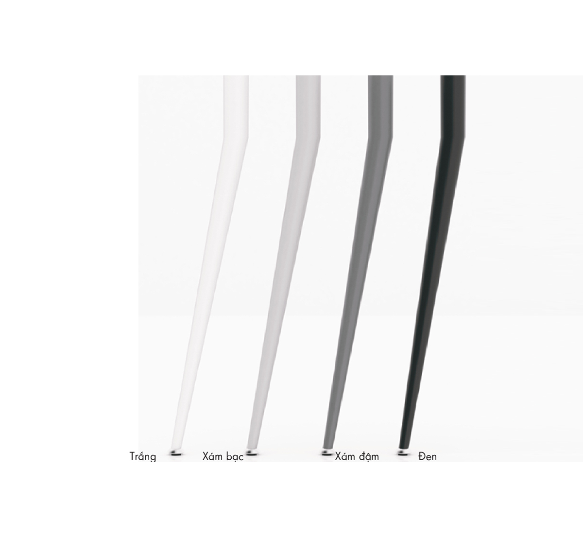 Mặt bàn chữ nhật nối liền xuống dưới là thanh xương sắt nâng đỡ mặt bàn được bắt với chân sắt dạng côn.