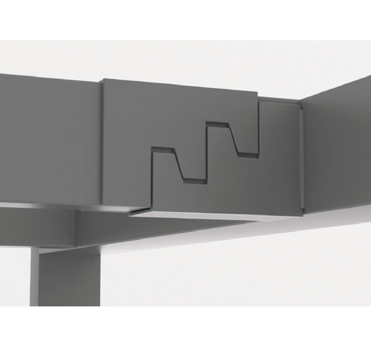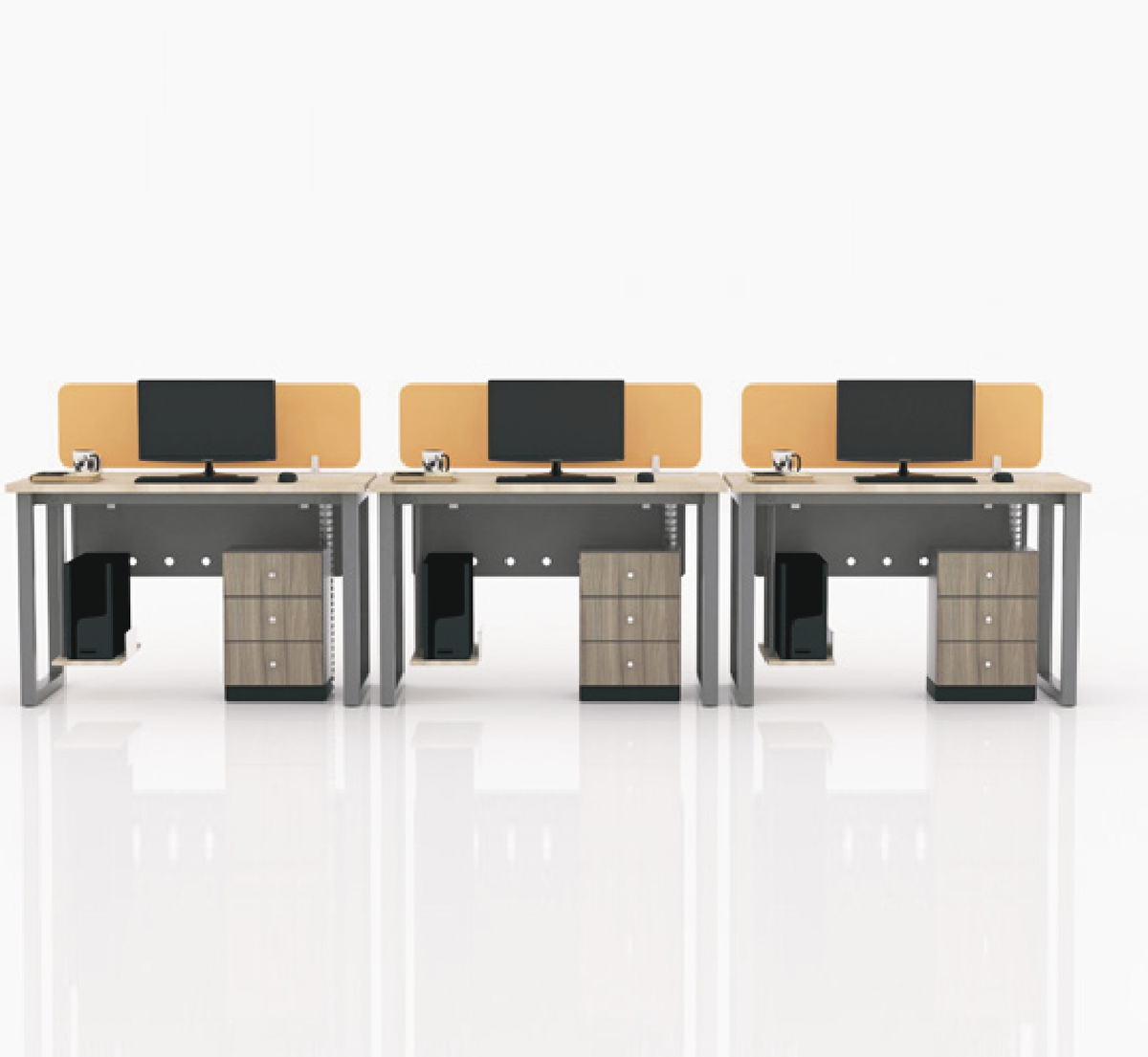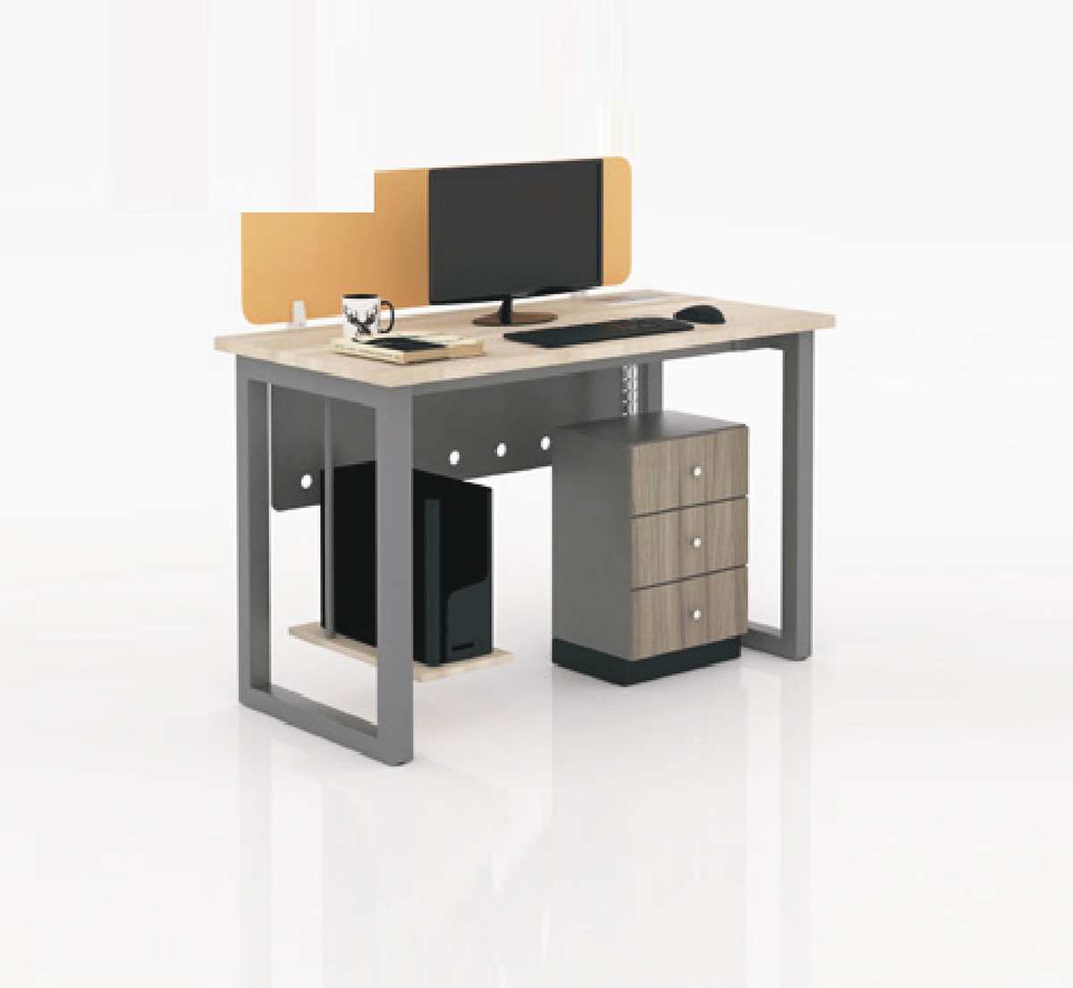 Mặt bàn chữ nhật nối liền xuống dưới là thanh xương sắt nâng đỡ mặt bàn được bắt với chân sắt chữ nhật.