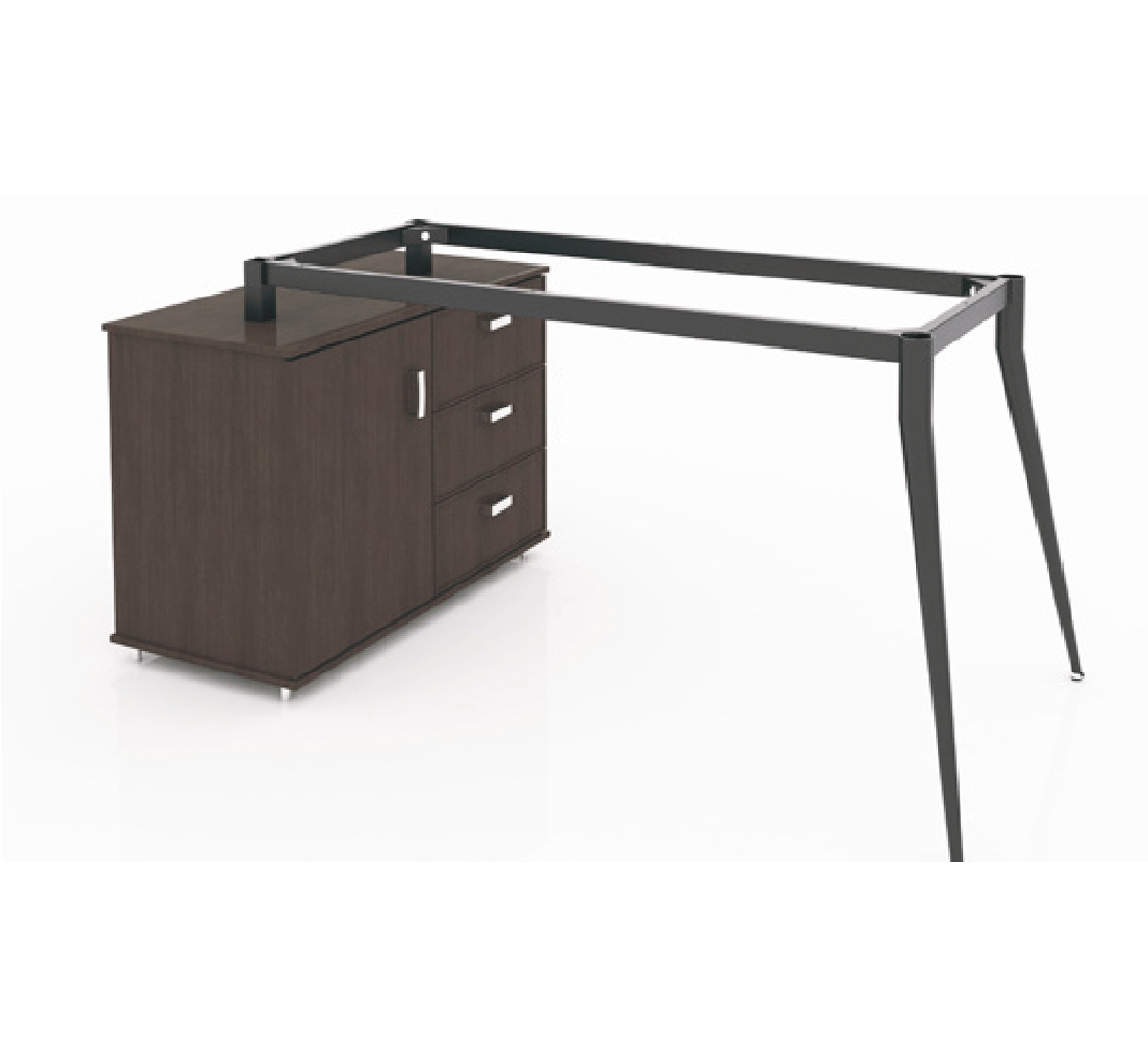 Mặt bàn chữ nhật nối liền xuống dưới là thanh xương sắt nâng đỡ mặt bàn được bắt với chân sắt dạng côn.