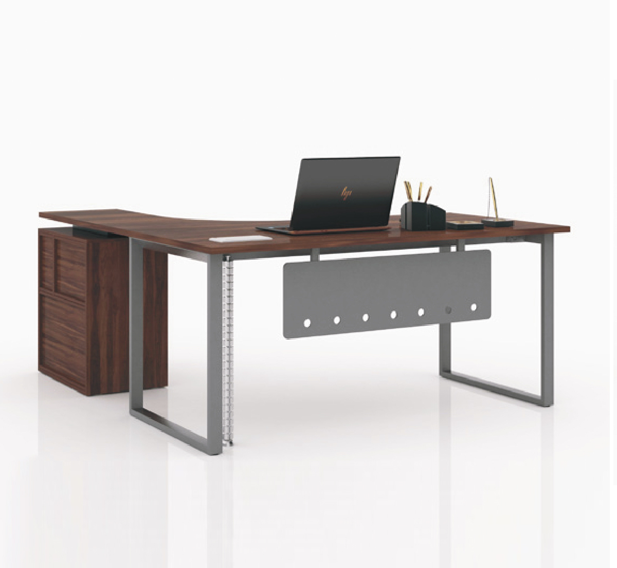 Bàn giám đốc 2 khung chạm đất kết hợp tủ hồ sơ Chân L