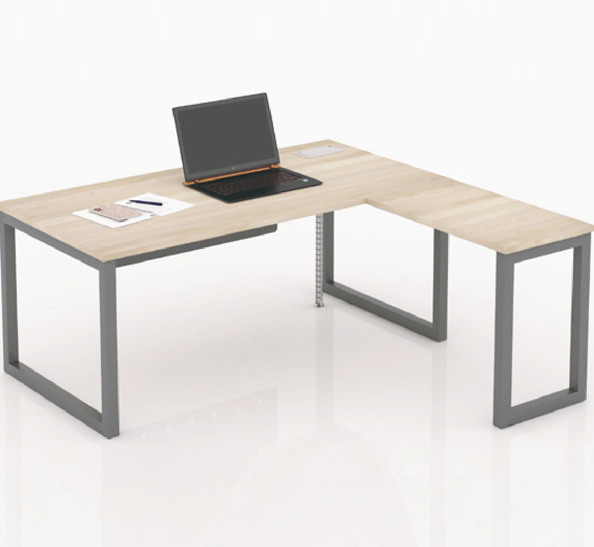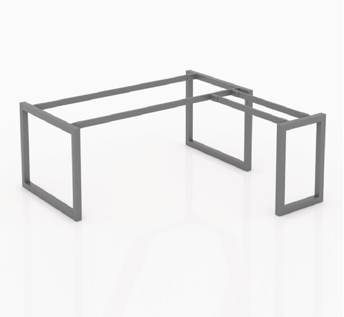 Mặt bàn chữ nhật nối liền xuống dưới là thanh xương sắt nâng đỡ mặt bàn được bắt với chân sắt chữ nhật.