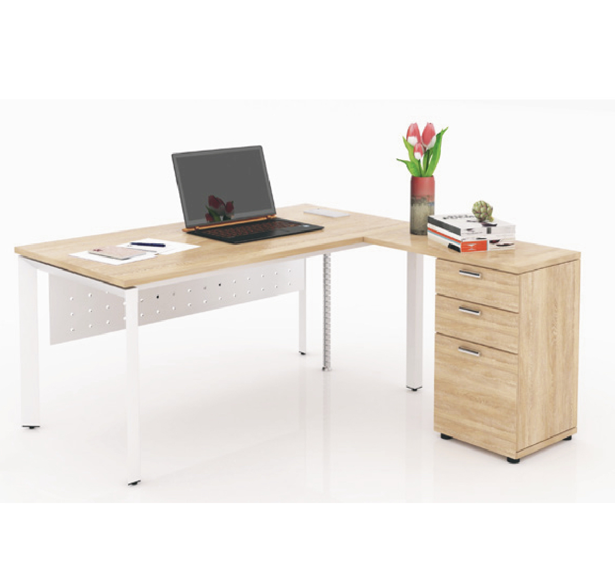 Mặt bàn chữ nhật nối liền xuống dưới là thanh xương sắt nâng đỡ mặt bàn được bắt với chân sắt tam giác.