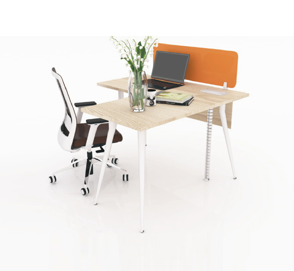 Mặt bàn chữ nhật nối liền xuống dưới là thanh xương sắt nâng đỡ mặt bàn được bắt với chân sắt dạng côn.