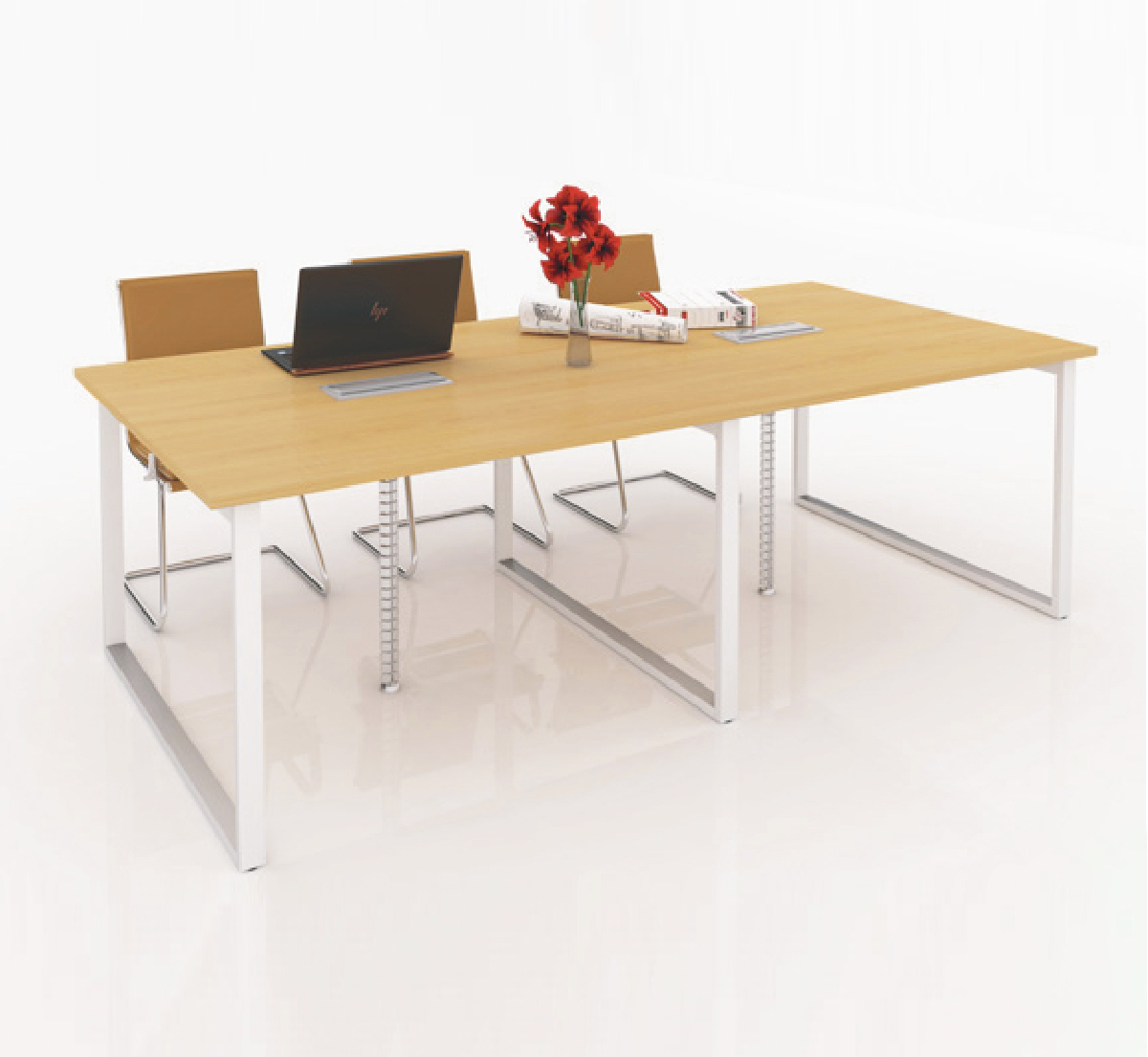 Mặt bàn chữ nhật nối liền xuống dưới là thanh xương sắt nâng đỡ mặt bàn được bắt với chân sắt chữ nhật.