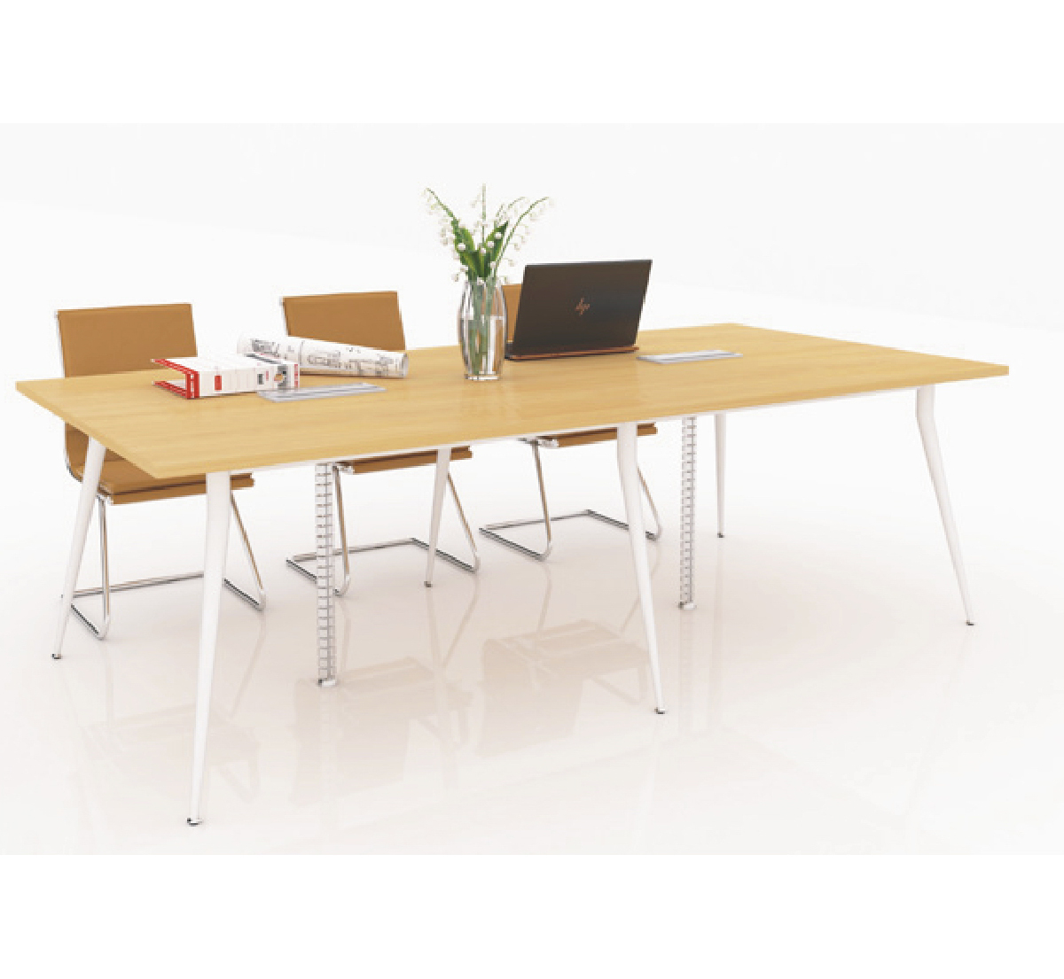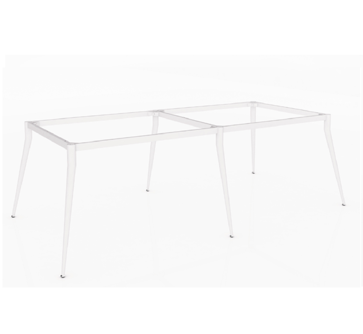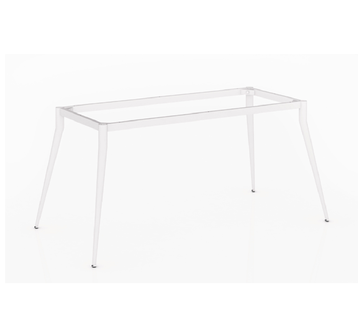 Mặt bàn chữ nhật nối liền xuống dưới là thanh xương sắt nâng đỡ mặt bàn được bắt với chân sắt dạng côn.