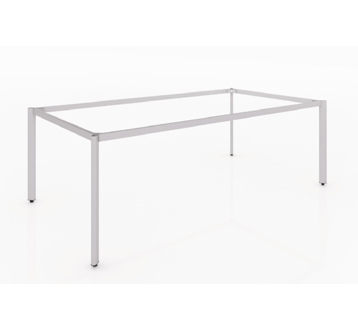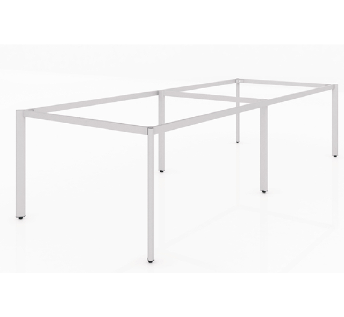 Mặt bàn chữ nhật nối liền xuống dưới là thanh xương sắt nâng đỡ mặt bàn được bắt với chân sắt dạng Oval.