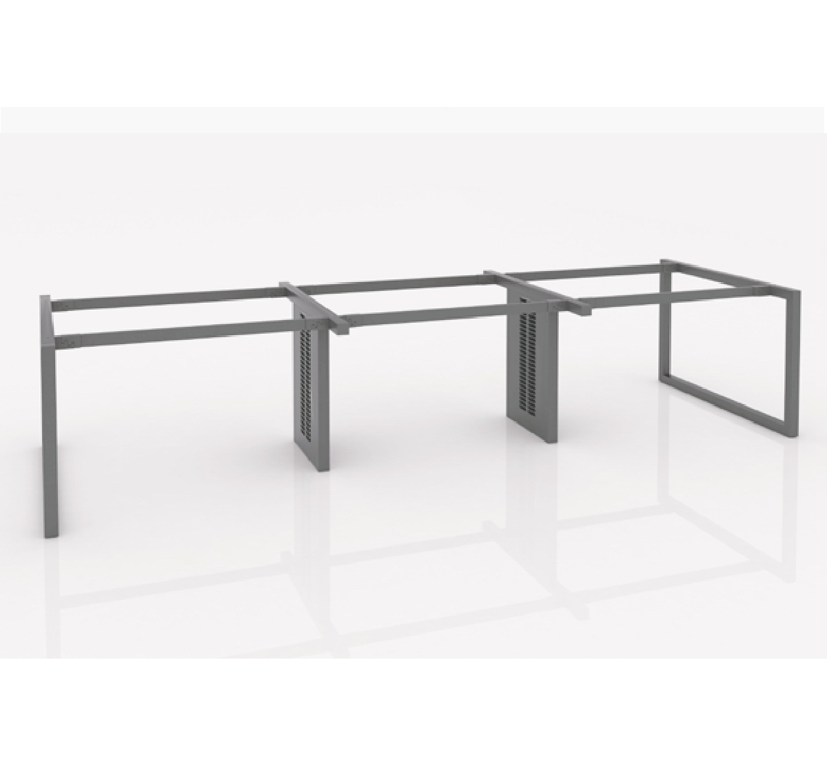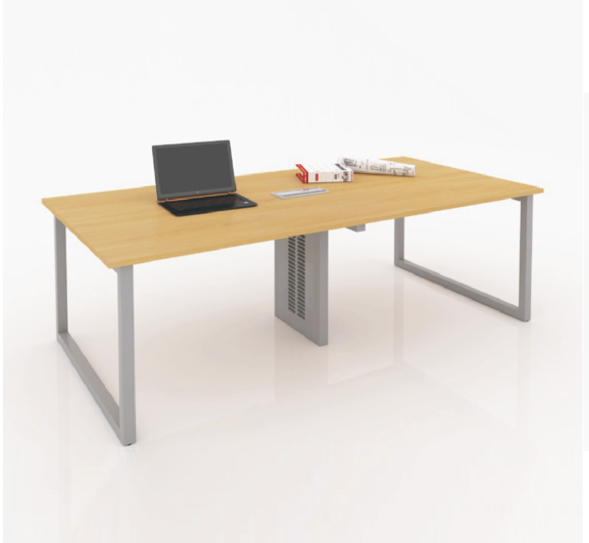Mặt bàn chữ nhật nối liền xuống dưới là thanh xương sắt nâng đỡ mặt bàn được bắt với chân sắt chữ nhật.