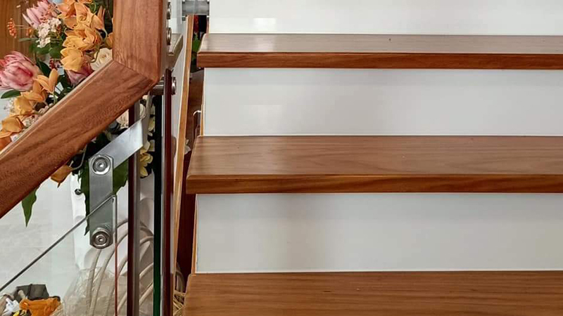 3. Cầu thang gỗ gõ đỏ chất lượng cao