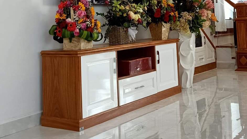 Mẫu kệ tivi gỗ trắng đỏ tự nhiên, họa tiết basic