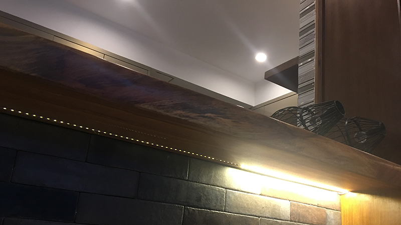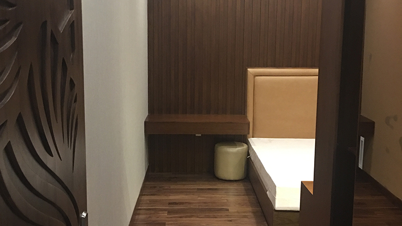 Sàn lát gỗ cao cấp kết hợp dãy sỏi phát sáng làm căn phòng trở nên huyền ảo