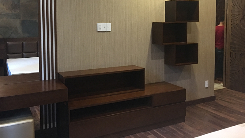 Kệ tivi, cùng mặt bàn ăn, làm từ gỗ gõ đỏ nguyên khối, vân gỗ đẹp, độ bền rất cao