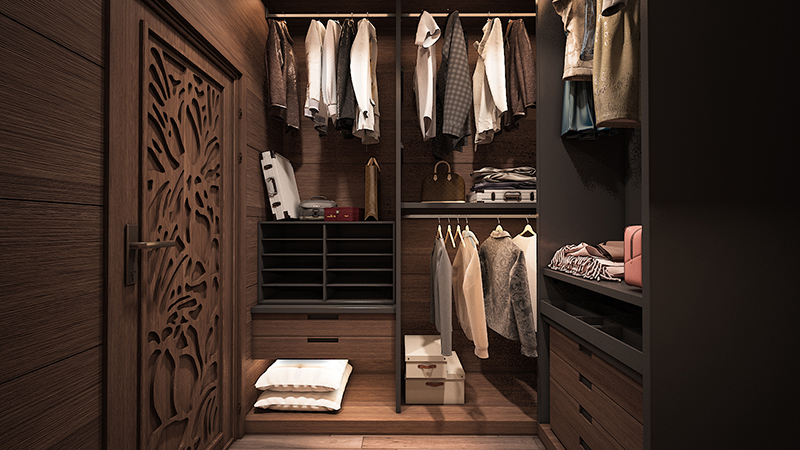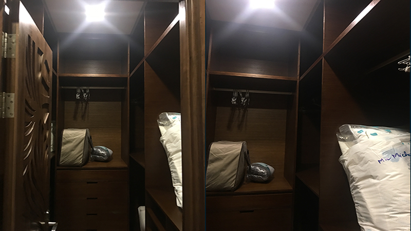 Hệ tủ gỗ phòng thay đồ gỗ đắt giá làm bật lên vẻ đẹp của những bộ trang phục
