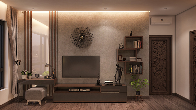 Thiết kế bàn trang điểm và kệ tivi vô cùng bắt mắt