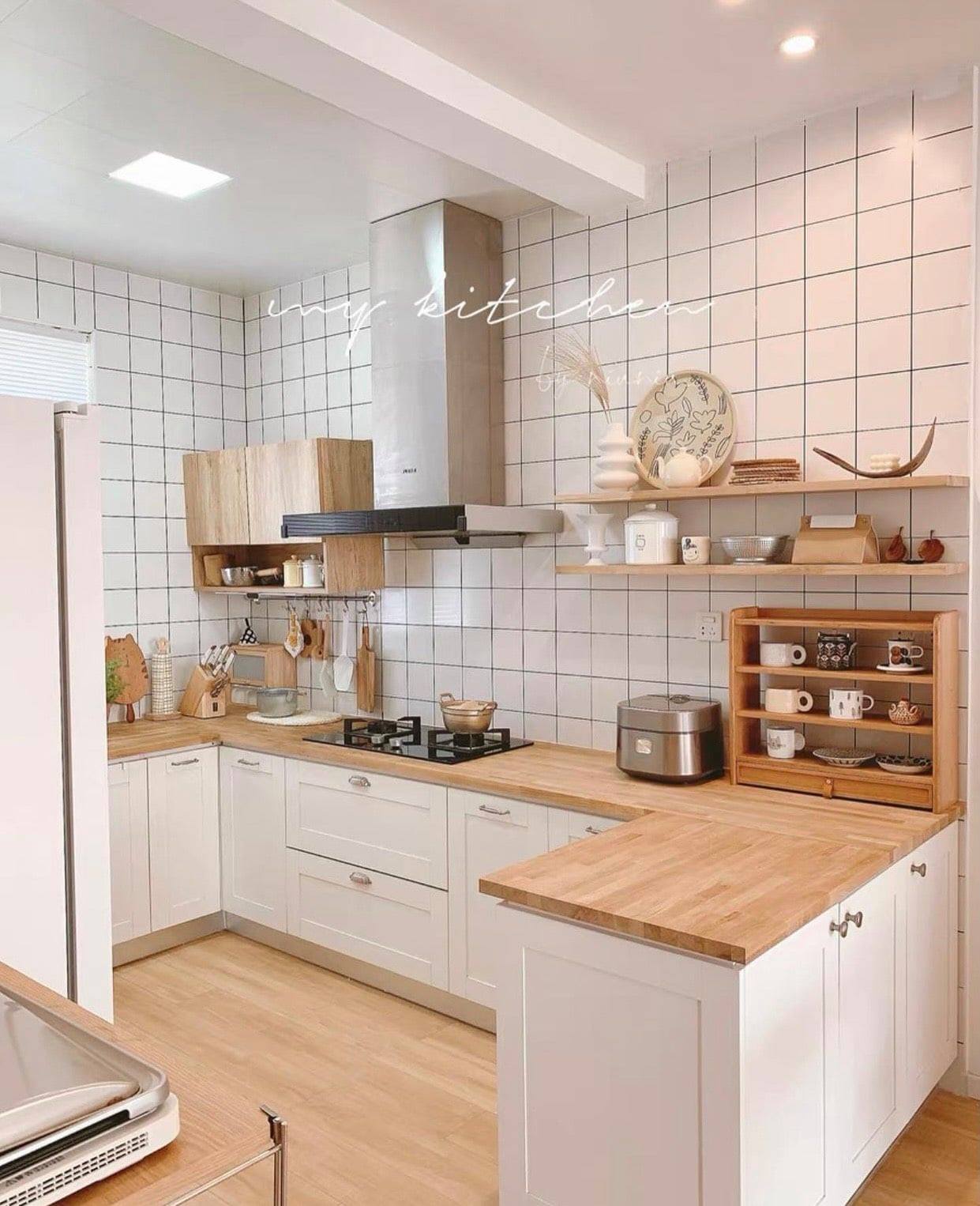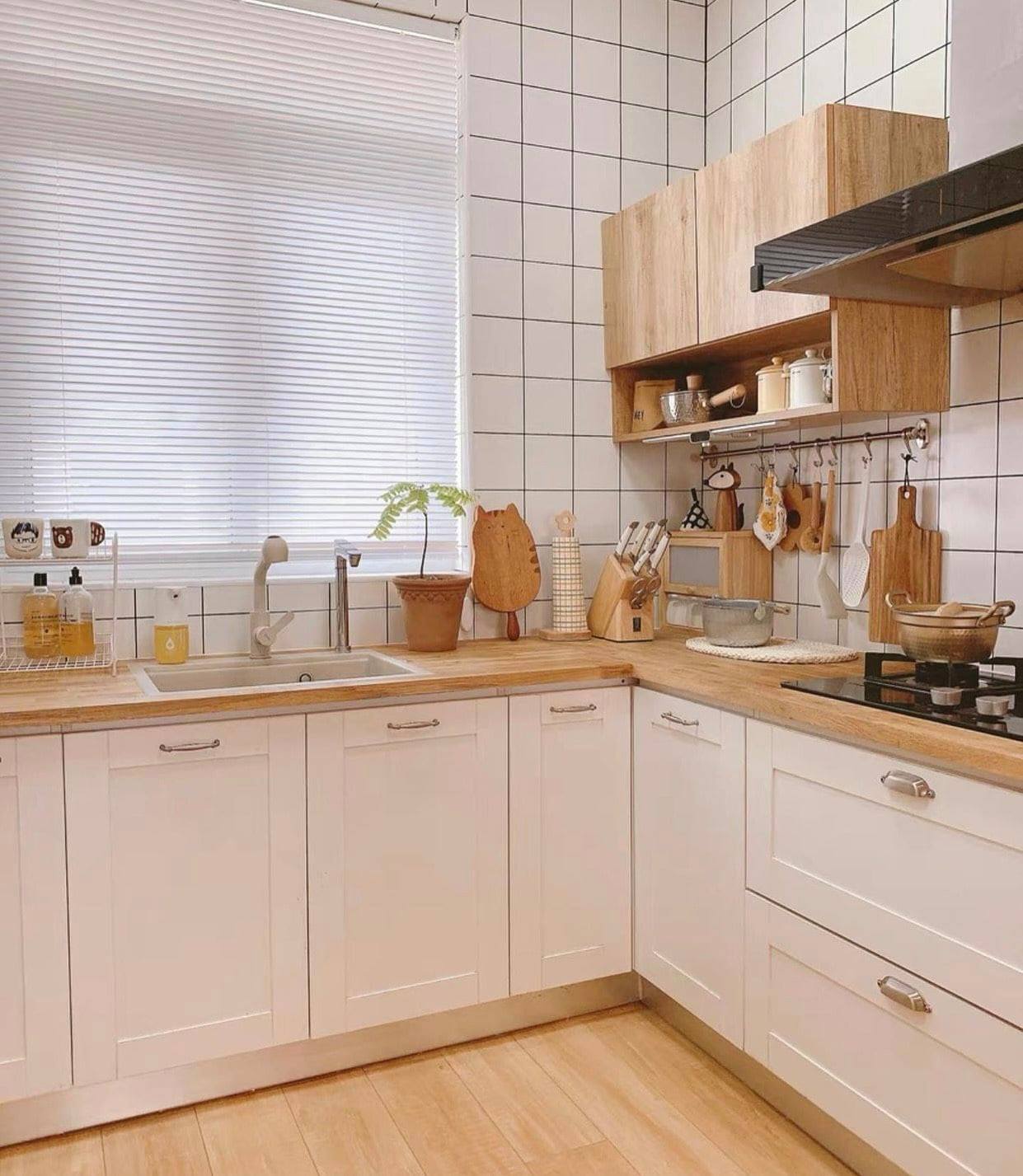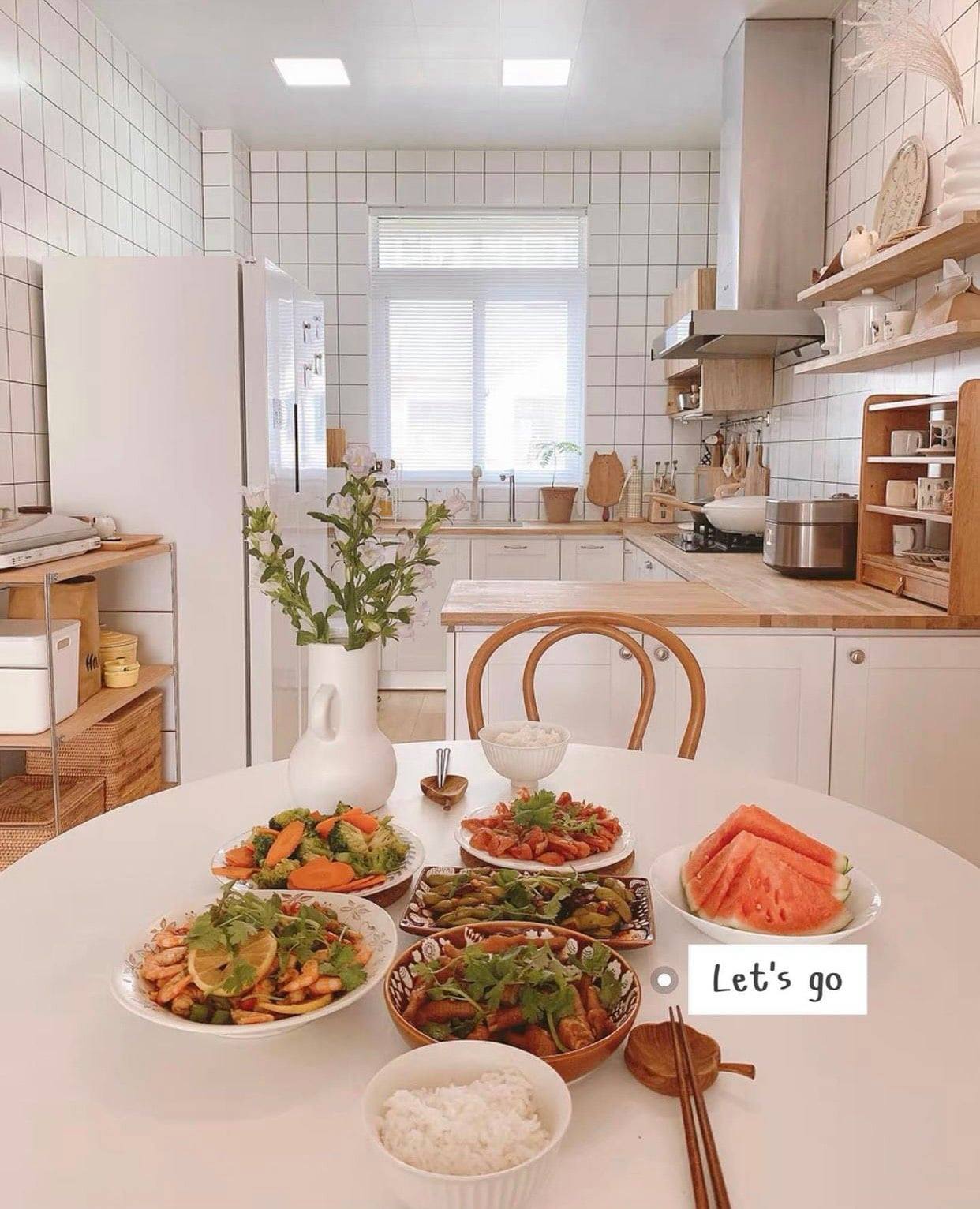DECOR CĂN BẾP ẤM CÚNG CÙNG TONE MÀU TRẮNG - NÂU GỖ