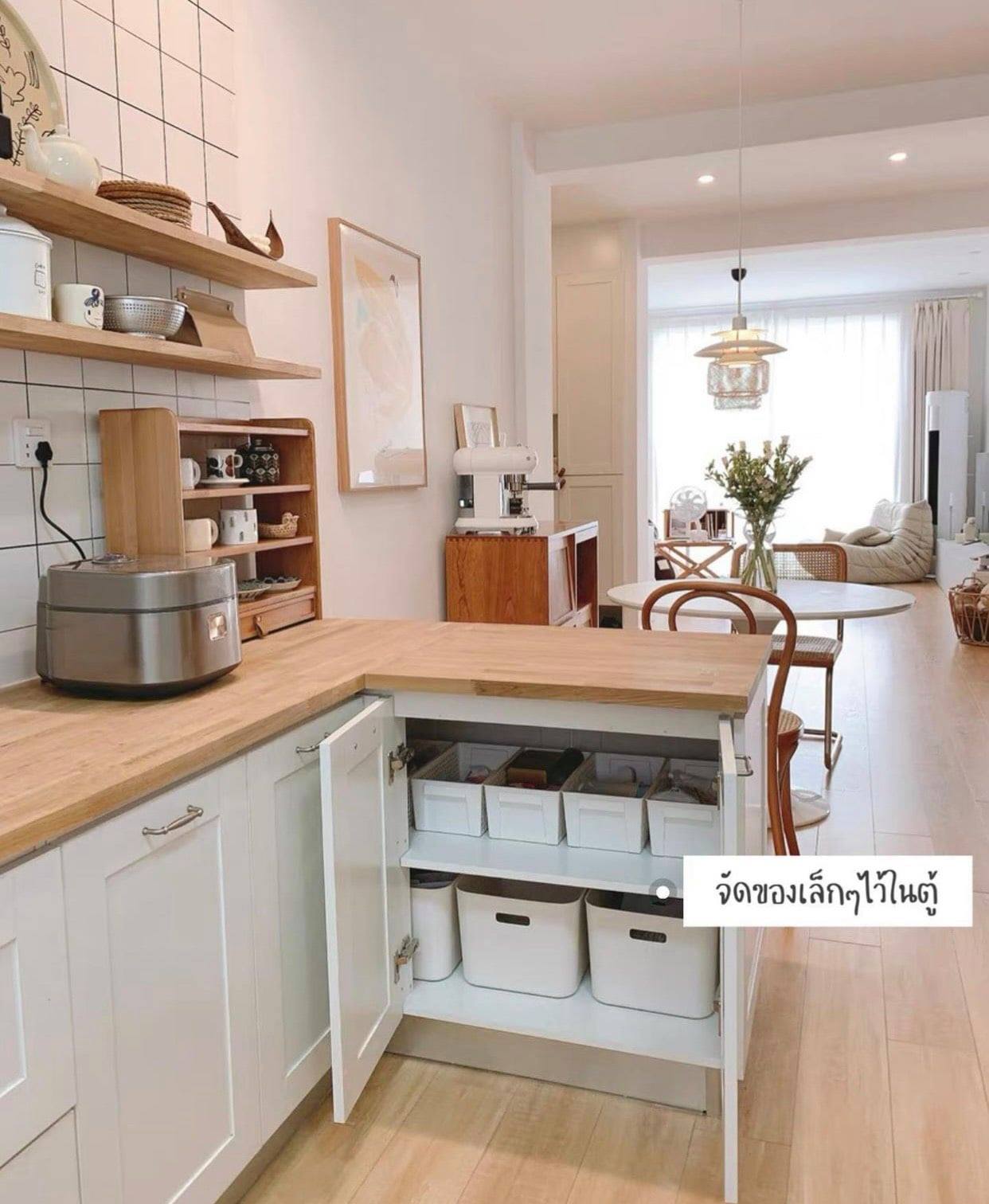 Nhìn dịu mắt tịnh tâm ghê, muốn nhào dzô nấu ăn liền mặc dù ko biết nấu một món nào nổi :))) Sắm mấy em dụng cụ nhà bếp bằng gỗ để decor giống vầy thử nè