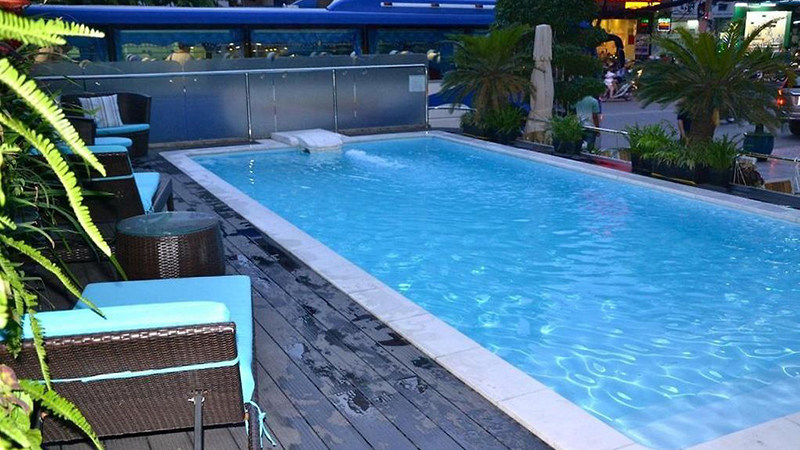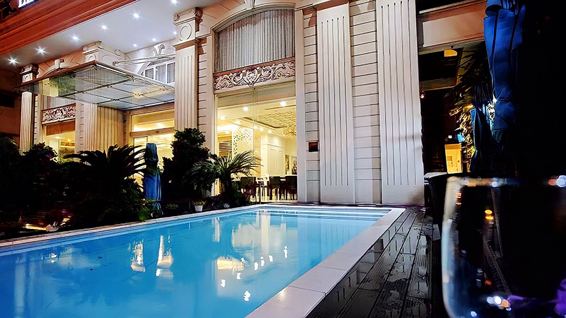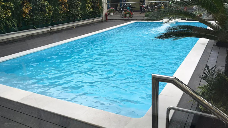 Hồ bơi khách sạn xanh mát, làm dịu đi không khí nóng bức của Sài Gòn